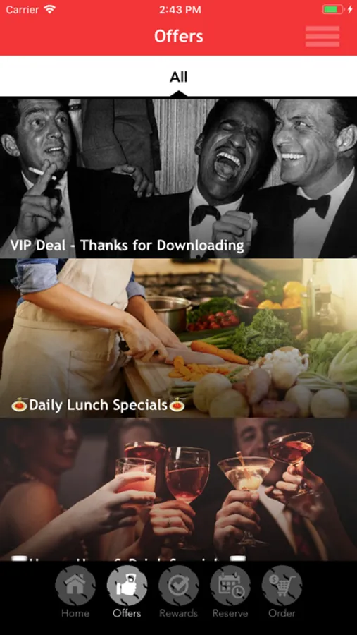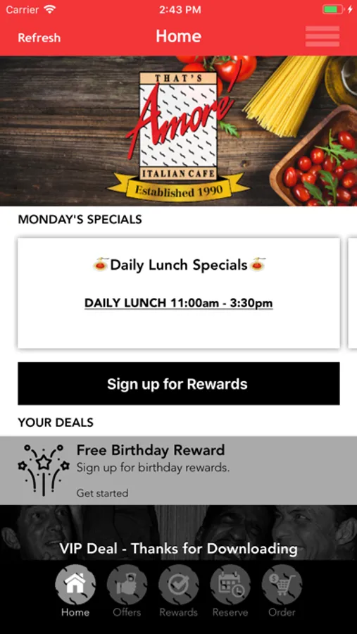 Use our app to order, see specials and events, get rewards and special VIP deals.