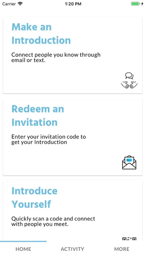Introduction is a platform for connecting people quickly and easily. Bring people you know together through text or email, introduce yourself quickly by scanning a code or create or search a post to find the right connection.