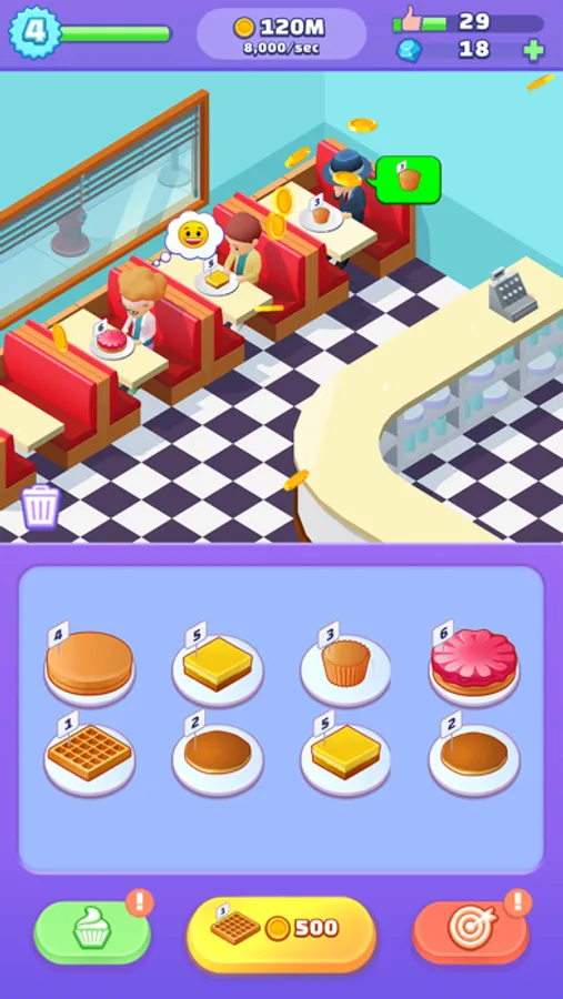 FEED HUNGRY CUSTOMERS and keep them happy. The happier they are, the more successful your bakery is doing! As you level up, more seats will become available so there are always more sweet-tooths to feed!