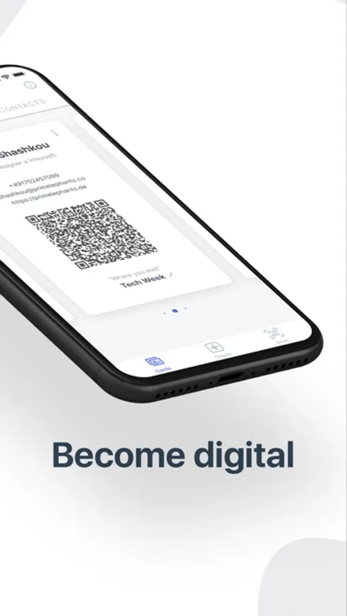 With this purely digital business card, you can exchange contacts easier than ever before. No more effort writing off paper cards to your contacts. Now you can just show the QR code of your digital business card, and your contact details will automatically be saved on the smartphone of your new associate.