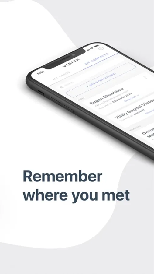 VISITK doesn’t need any registration and works without the internet. Your digital business cards are saved ONLY on your phone.