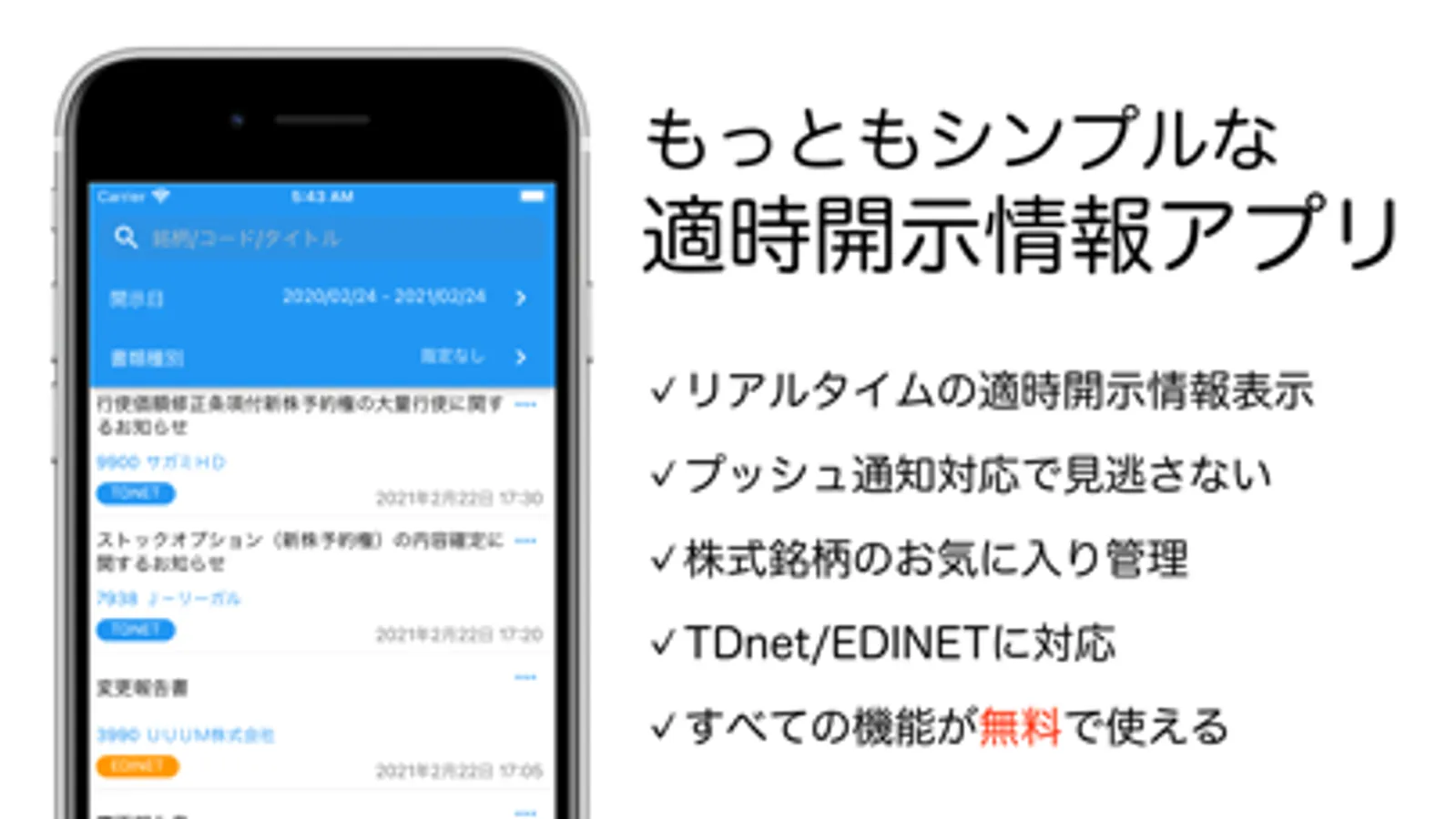 It is the simplest application that allows you to view real-time timely disclosure information.