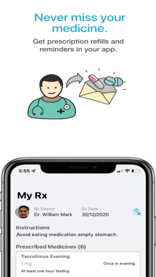 • Ability to record all medicines to be taken and also receive prescription from the doctor, in the app