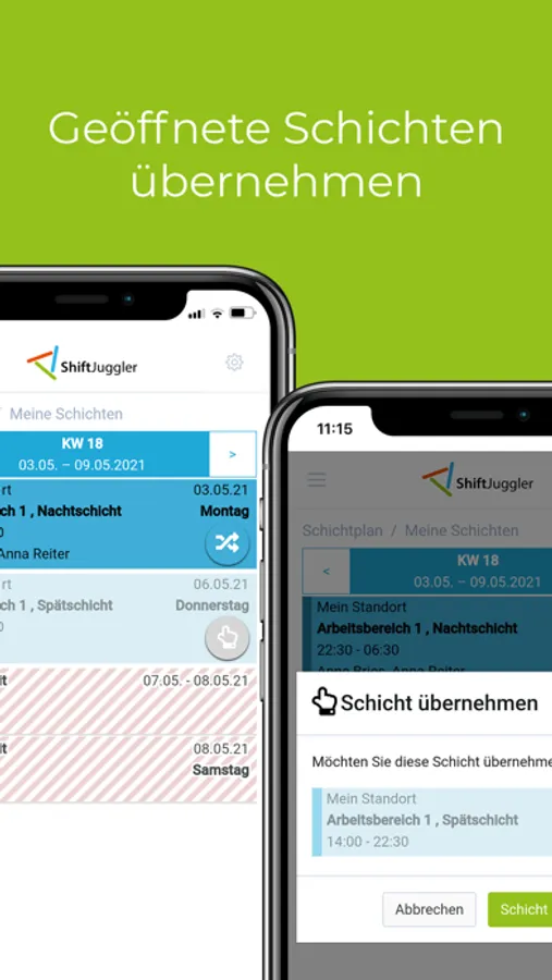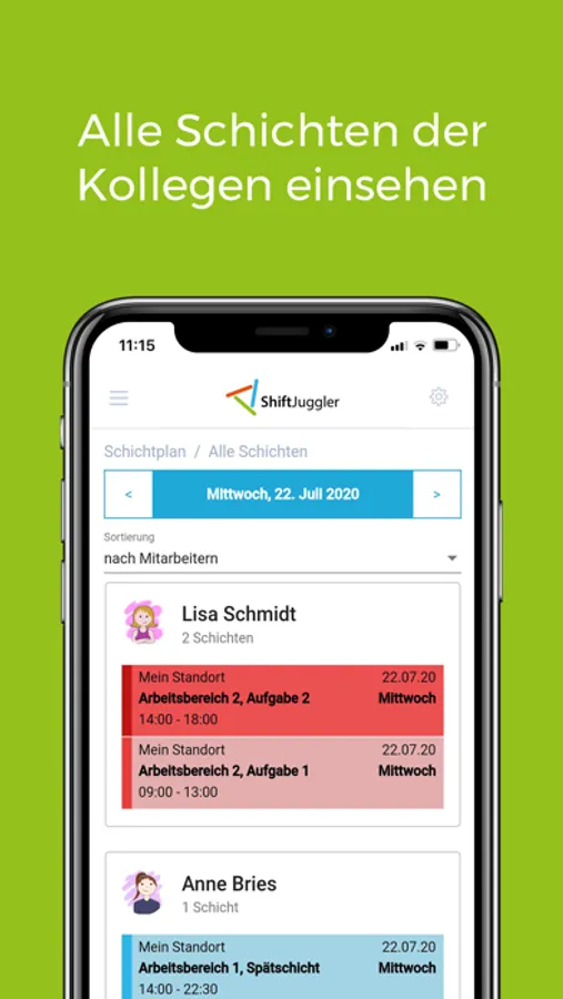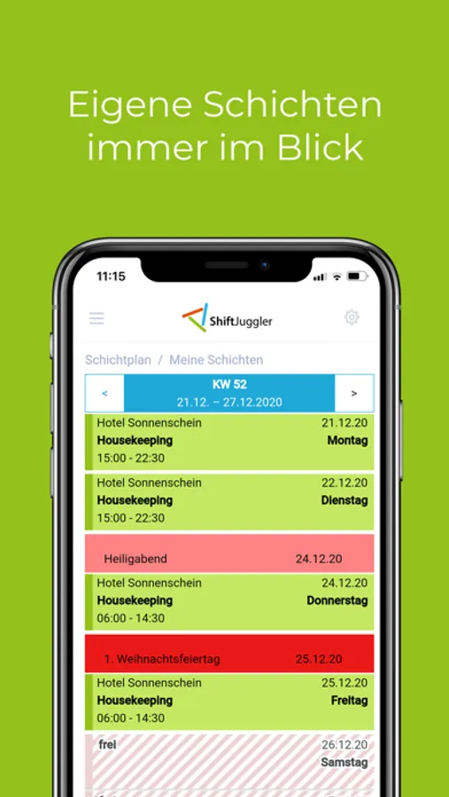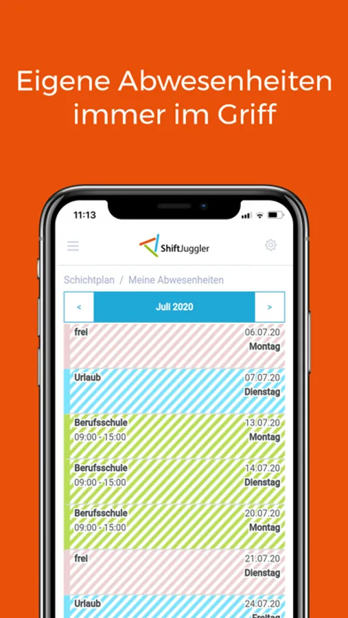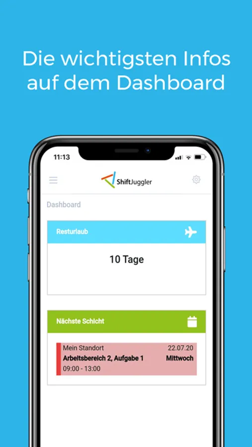 Die ShiftJuggler-App bringt Ihren Dienstplan, Ihre Abwesenheiten und eine intuitive Möglichkeit der Arbeitszeiterfassung auf Ihr Handy.