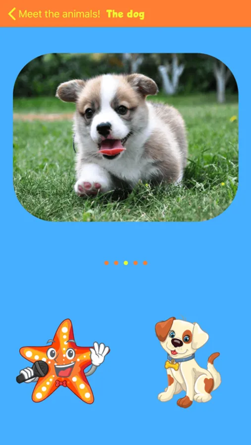 At first, animals are presented through realistic cartoons with bright colors, so that they attract the kids’ attention. With just a single tap children can listen to the name and the sound of each animal, while long tapping on it kids can see various animal photos. The photos have been carefully selected, so that they portray different stages of the animal’s life (e.g. baby animal). To combine the animal’s name and sound with what kids see in the photos, there is the option to listen to them again, while they are in the photo gallery.