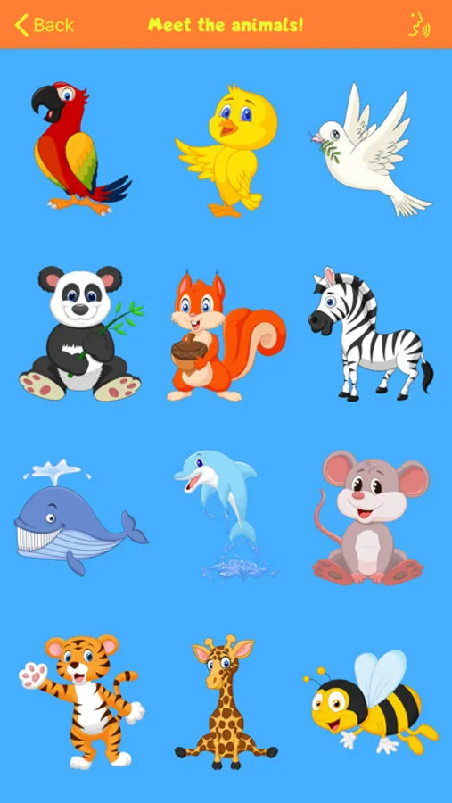 • 48 animals of different categories (pets, farm animals, wild animals etc.) to learn