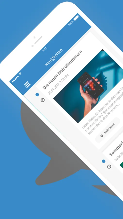 Die kostenlose My-Immo-App erleichtert unseren Kunden die Kommunikation mit uns. Unabhängig von Öffnungszeiten und Aufenthaltsorten ist mit einem Griff zum
