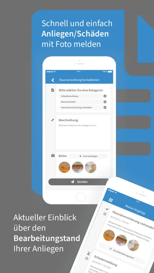 Handy, Tablet oder PC schnell eine Nachricht an Ihre Verwaltung verschickt. Einen Schadensfall melden Sie gleich mit Foto. Das erleichtert die Abwicklung.
