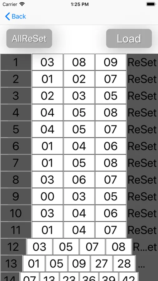 表示された内容は、「AllReSet」、「Load」をタップするまで維持され、メニューに戻って再度、「GetNumber」をタップした場合、その先の「Setting」から「GetNumber」に戻って来た場合も維持された内容が表示されます。