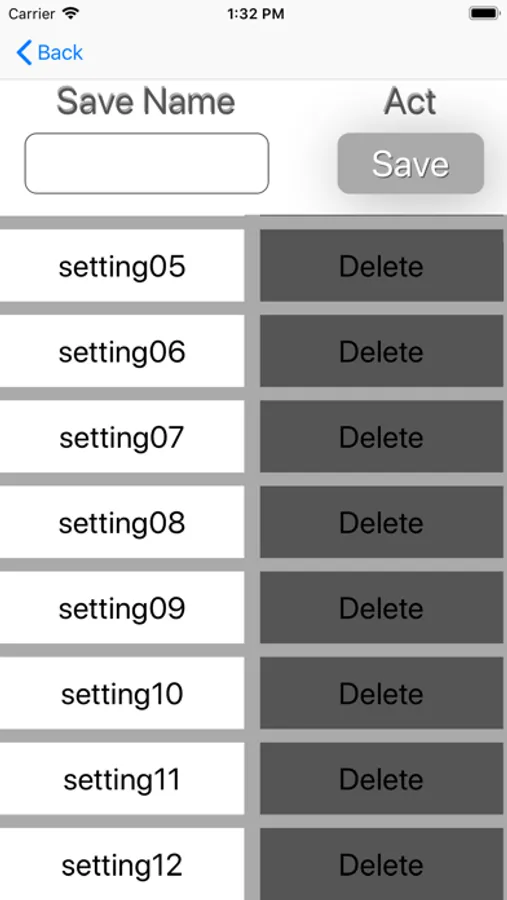 「Setting」をタップして遷移した画面で、「Save」をタップして遷移した画面では、設定した内容に名前を付けて保存できます。