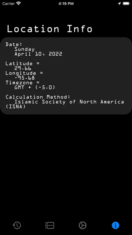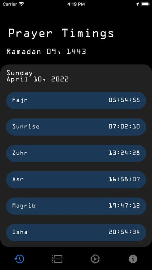 Prayer Timings based on user's current location (latitude, longitude, and time zone)...