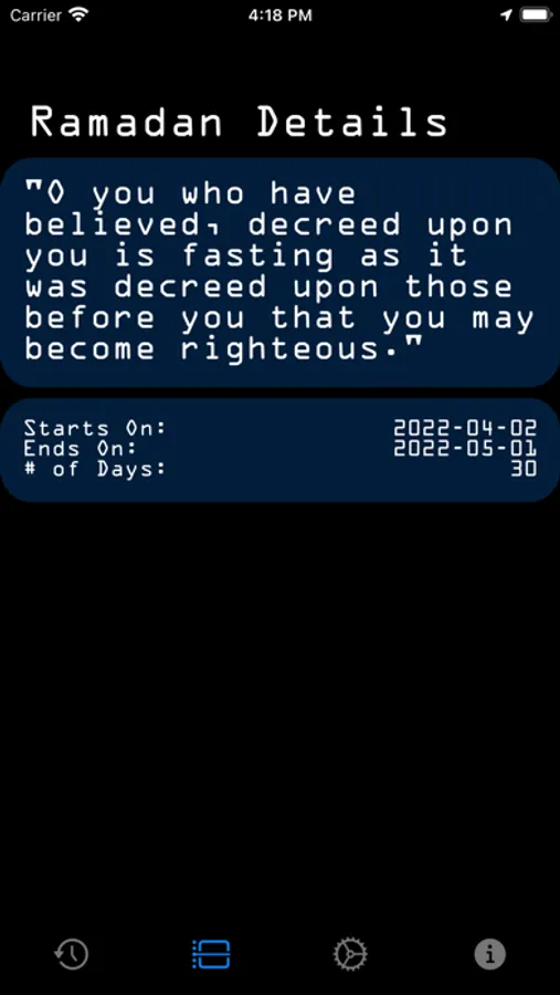 * Current Year Ramadan Details.