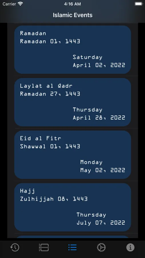 * List of Islamic Events
