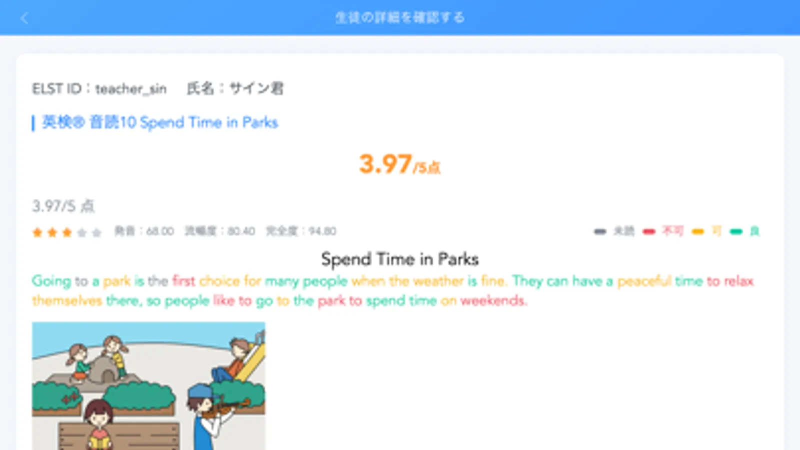 スピーキング教材の管理が一目瞭然で