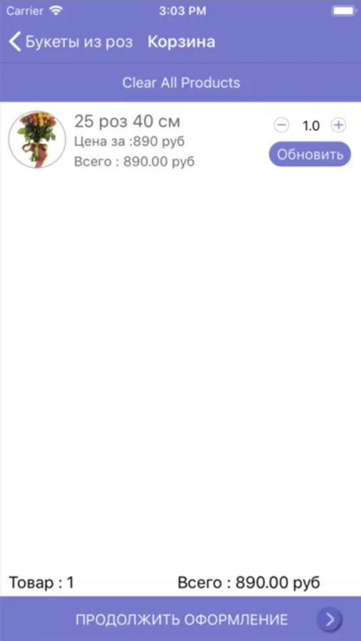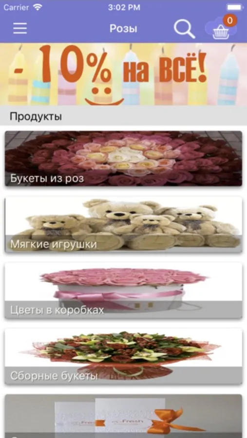 В нашем приложении вы можете сделать заказ на доставку цветов.