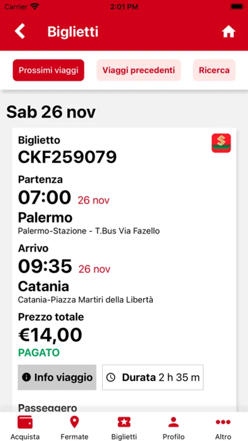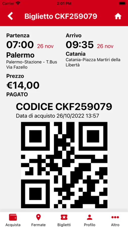 Questa app ti permette di cercare ed acquistare le soluzioni di viaggio, di visualizzare i tuoi biglietti, di visualizzare il QRCode del biglietto per la validazione a bordo, di effettuare le operazioni di annullamento e cambio data sui tuoi biglietti e di ricercare le fermate intorno a te!