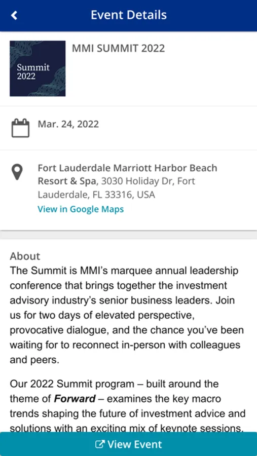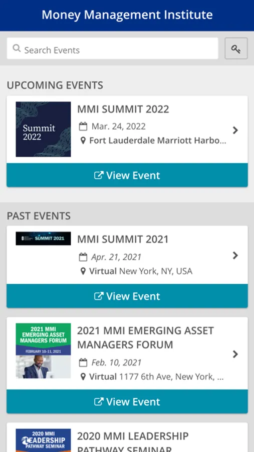 This is the official app for Money Management Institute (MMI) conferences and events. Log in to view key program information, including the event agenda, speaker biographies, information on sponsors and exhibitors, and important updates. You can also view the attendee list, message your fellow participants, and provide feedback.