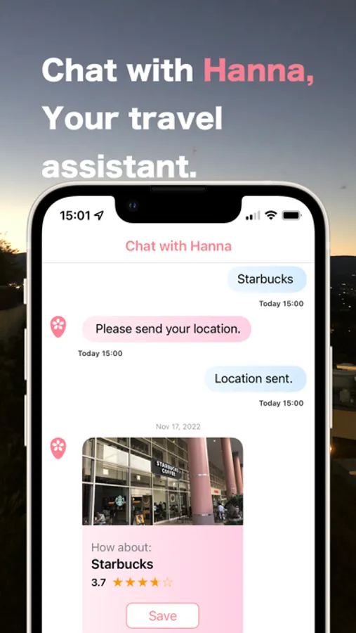 Hanna is an interactive chatbot that helps you find the ideal place for you to eat, shop, sightsee, and everything you need.