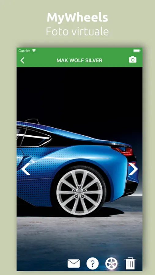 - Realtà aumentata: attraverso la fotocamera del dispositivo visualizza dal vivo il cerchio montato sulla tua autovettura (solo con device compatibili ARKit)