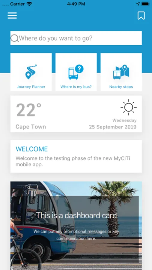 The app enables commuters, visitors and locals to plan their journey around Cape Town and the surrounding area using the world class MyCiTi bus service.