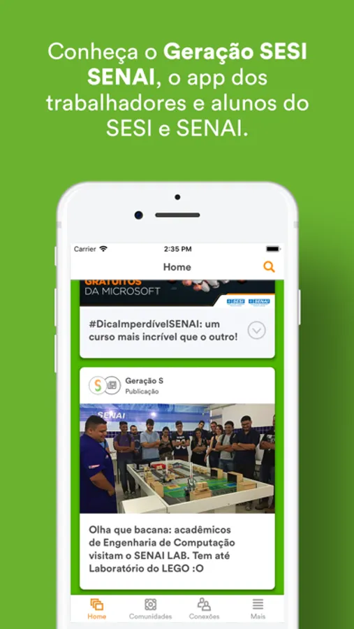 O Geração SESI SENAI é mais do que um aplicativo. É um programa de relacionamento e valorização dos milhares de trabalhadores e alunos do SESI e SENAI, que fazem do Brasil um país mais forte e qualificado.