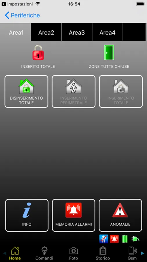 -Visualizzare lo stato, inserire e disinserire le singole aree dell’impianto;
