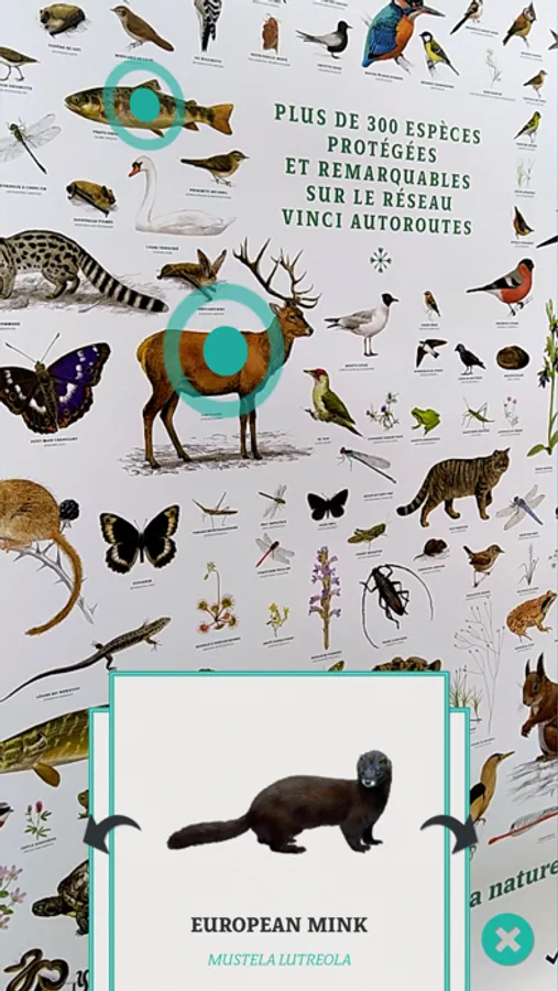 Tap on one of the point to reveal a 3D scene or additional informations on the animals.