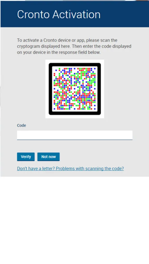 use your smartphone camera to instantly scan a graphical cryptogram on the PC screen and follow the instructions to login into BCC e-banking site and mobile app in the best secure way .
