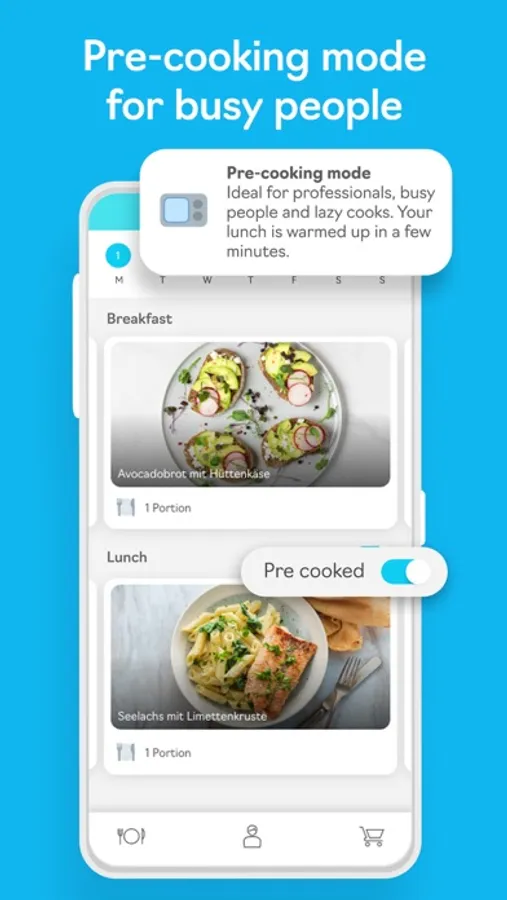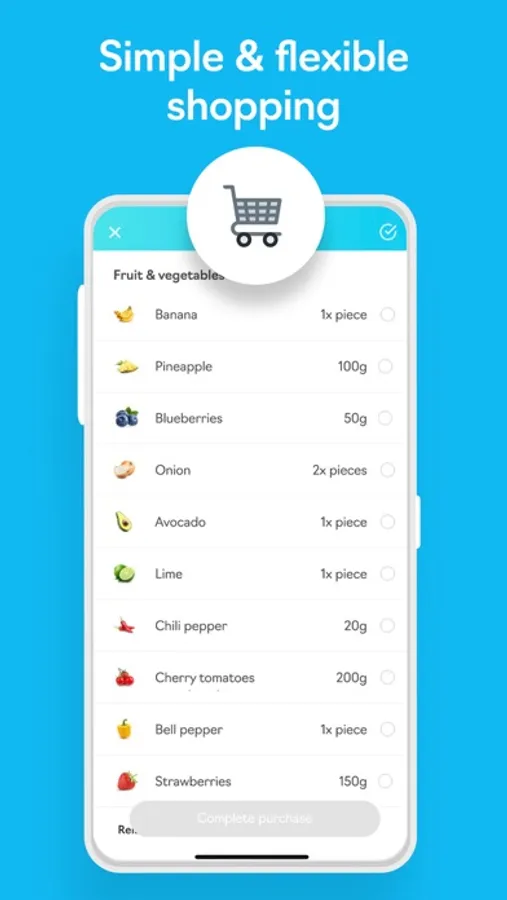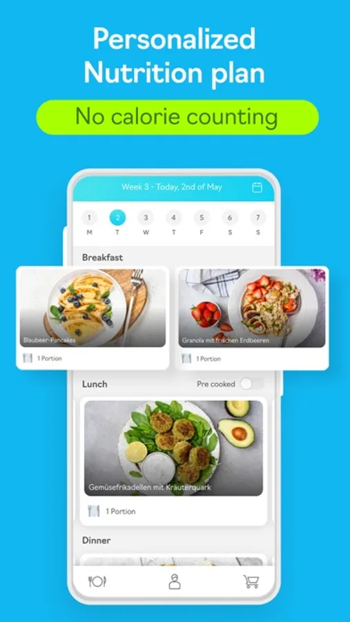 With the intelligent shopping list you decide how and when you want to go shopping • no matter if week by week, day by day or meal by meal. All necessary groceries on the shopping list can be checked off. So you have all the ingredients you need at home to start your new life in the best possible way.
