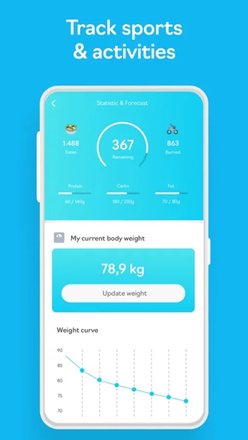 With FoodPal, you can track all your big and small activities and always have your calorie consumption in view.