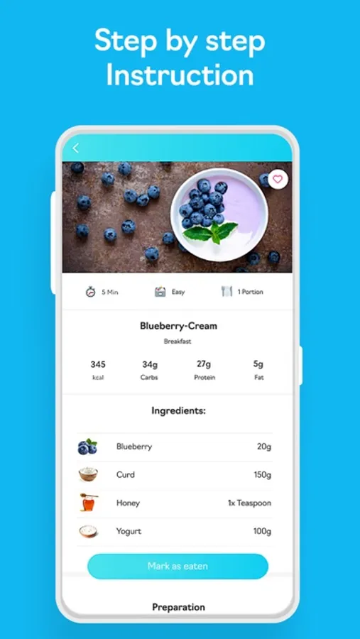Whether you want to lose weight, gain weight, build muscle or simply eat a balanced and sustainable diet, FoodPal creates your personal meal plan and provides you with simple and quick recipes that perfectly fit your nutritional goals. For each breakfast, lunch and dinner you will be provided with three different recipes. In addition, you can expect step-by-step instructions so that each dish is sure to succeed. The macros (carbs, proteins and fats) are also provided free of charge with each recipe.