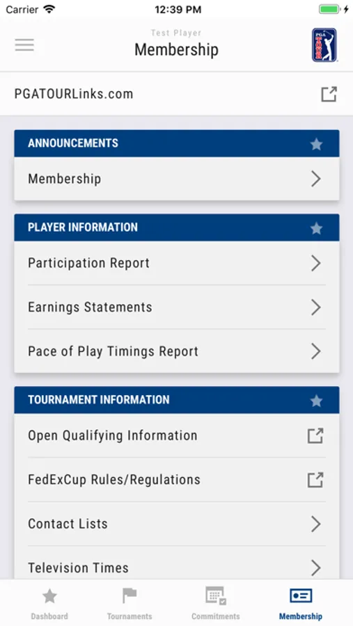 The PGA TOUR Member information portal allows members to receive the latest information from the PGA TOUR. You must be a member of the PGA TOUR with an active account to log into this application.