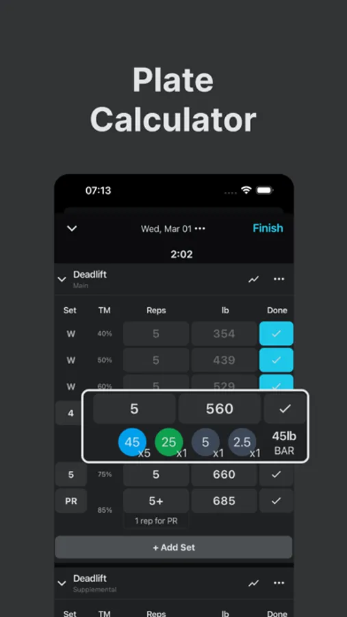 The 5/3/1 program is amazing for strength gains but your energy and time are wasted trying to figure out what plates you need for each set. In the upgraded Pro version you get a Plate Calculator so you focus on the things that matter.