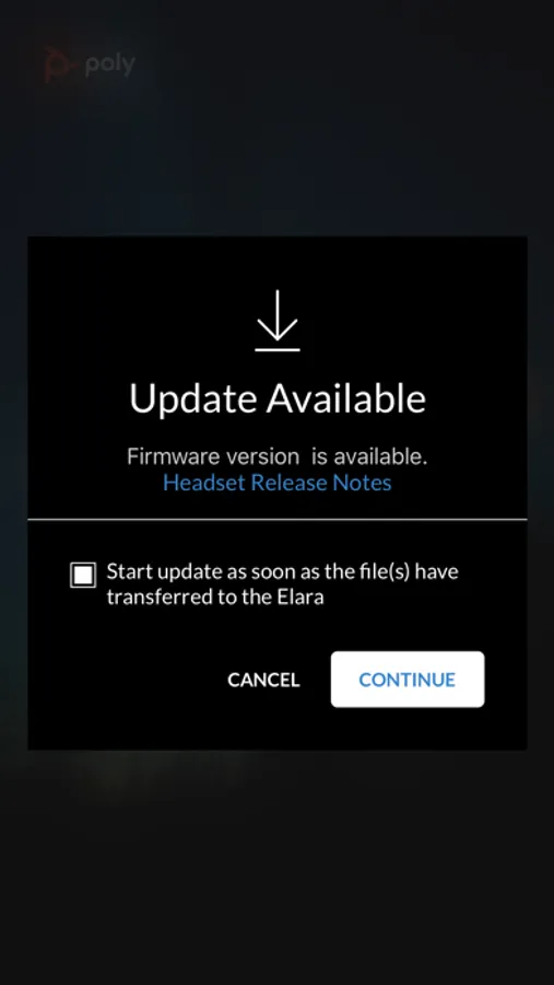 Update the firmware on your Elara 60 series and connected Plantronics headset to get the latest features. You will be automatically notified when new firmware is released. Keeping your Poly devices up-to-date ensures compatibility and the best performance.