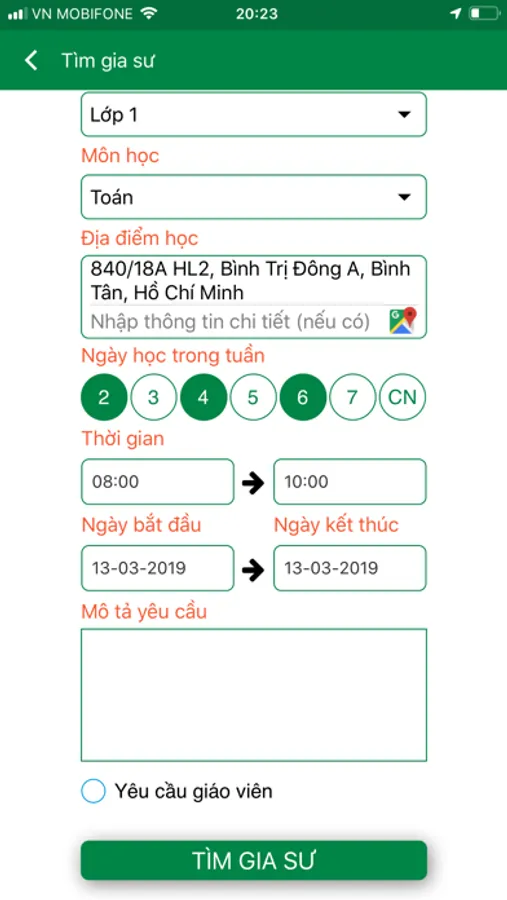 - Có thể xem xét và lựa chọn gia sư phù hợp khi gia sư ứng tuyển.