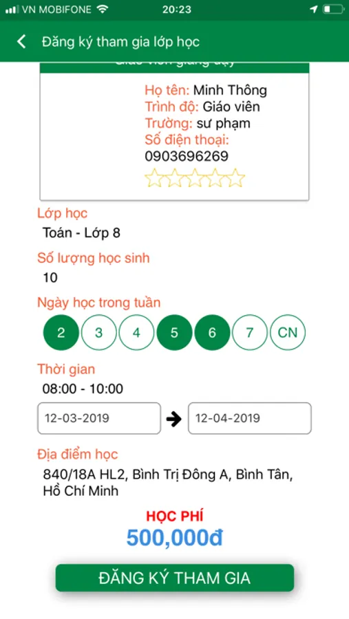 học sinh có thể dễ dàng tìm kiếm và đăng kí, giúp gia tăng số lượng học sinh.