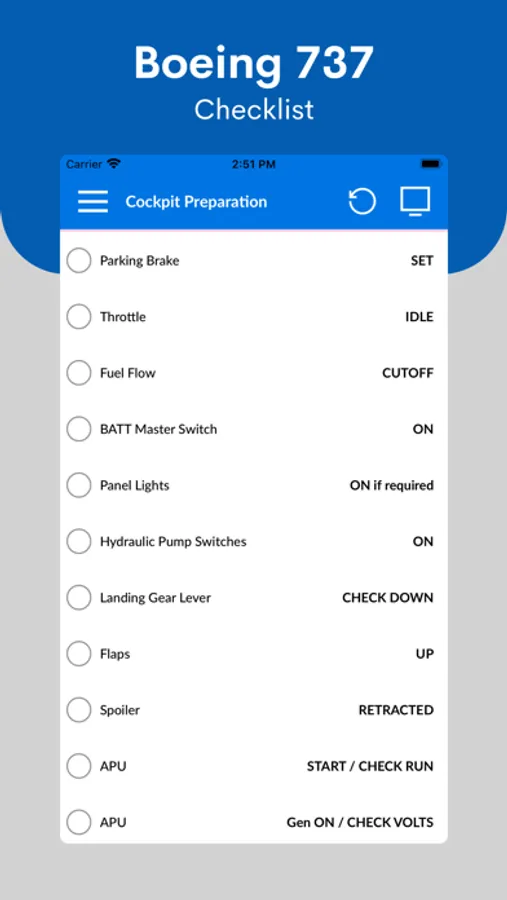 Boeing 737 Checklist App will help you to check all the procedures on a Boeing 737 plane. Supporting flight procedures, the app is providing a useful timer.