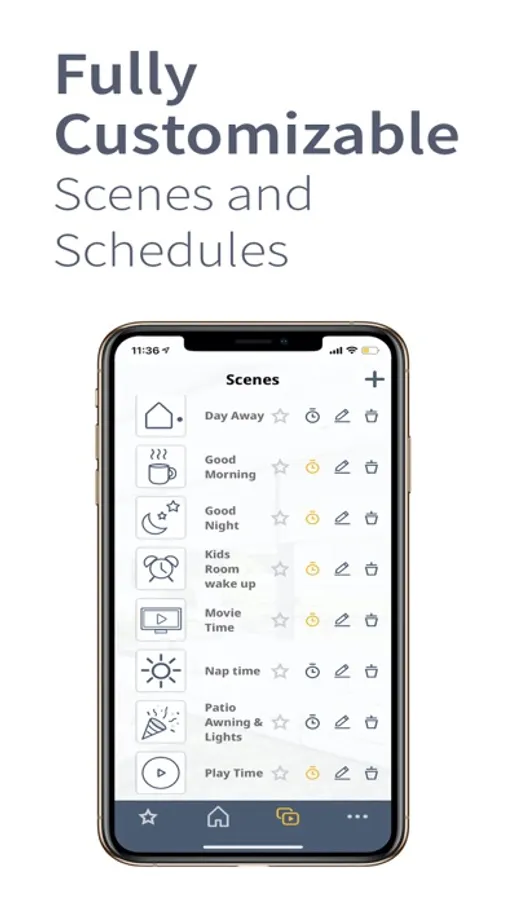 Centralize your connected devices by adding them to scenes, which send commands based around your everyday lifestyle.