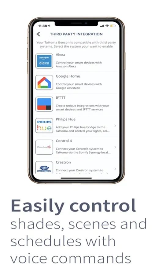 After connecting your Somfy account to Amazon Alexa, users can launch scenes with voice-control via Amazon Alexa.