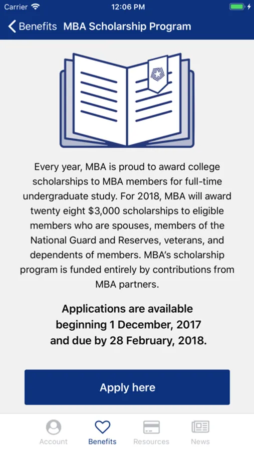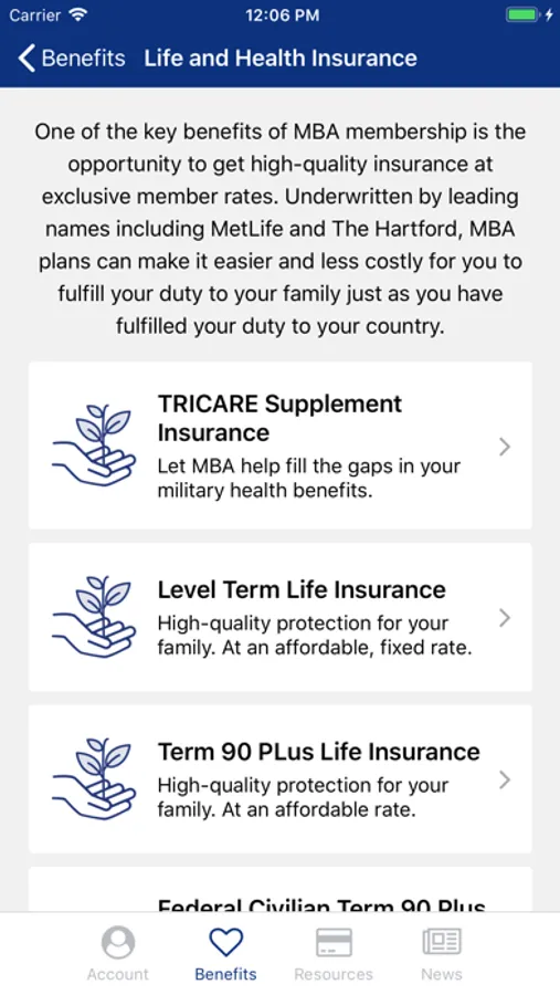 Military Benefit Association (MBA) is a non-profit association created to safeguard and promote the economic welfare of current and former service members, federal employees, and their families. Use the MBA app to learn more about MBA and services we offer. Also use the app to access your account, MBA card and coverage.
