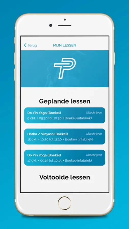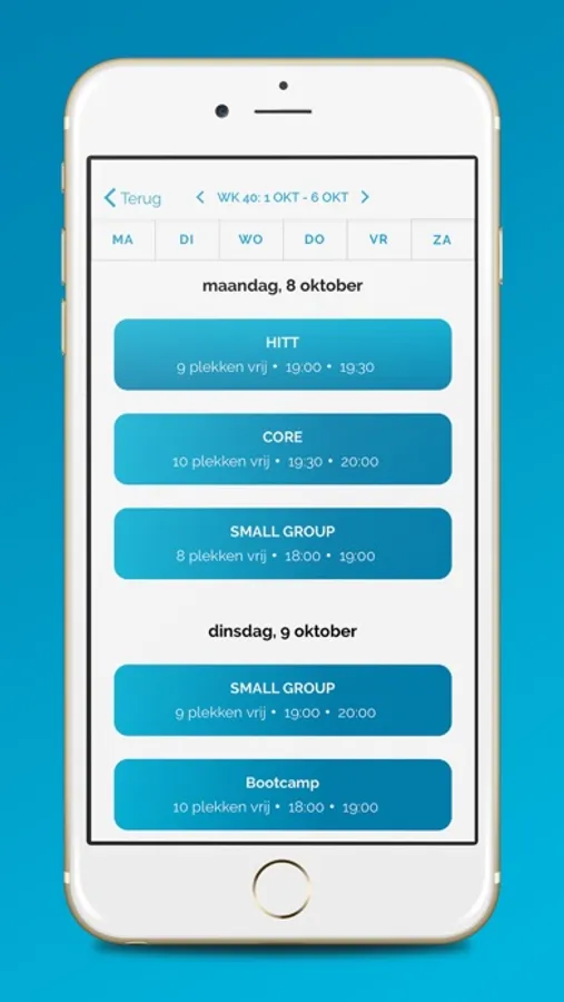 Met behulp van de CLUBPT app kun je eenvoudig inschrijven op geplande Bootcamp, CrossFit of Yoga & Tacoyo lessen.