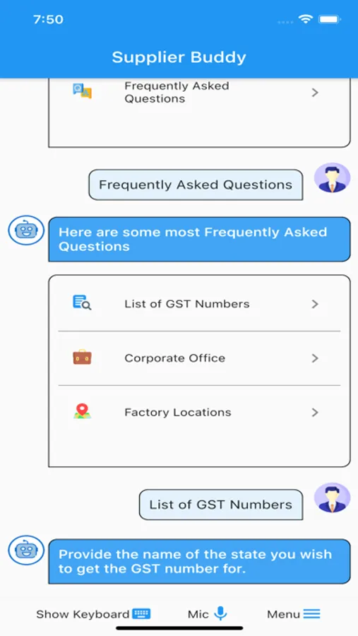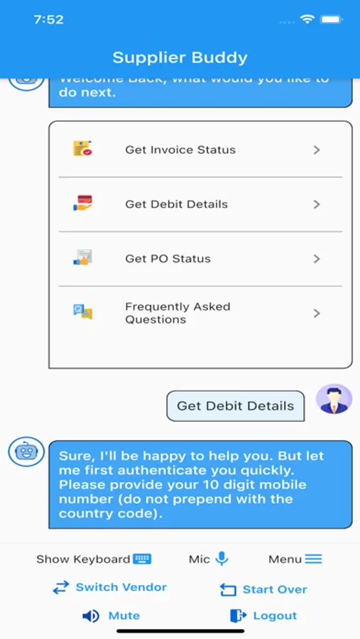 "Supplier Buddy" is a Virtual Assistant (BOT) built by Ashok Leyland to help our Suppliers with real time information related to Invoice status, Payment details, debit note information and purchase order details. This will also help our suppliers to know the state wise GST Numbers and address of their respective delivery locations. Suppliers can register their mobile with their respective purchase officers of Ashok Leyland and can start interacting with their Buddy.