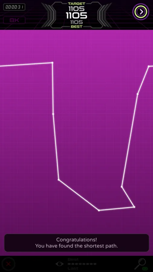 Connect the dots and find the shortest route! But beware, the world wraps in both directions. Wisely move the screen to solve the puzzle.