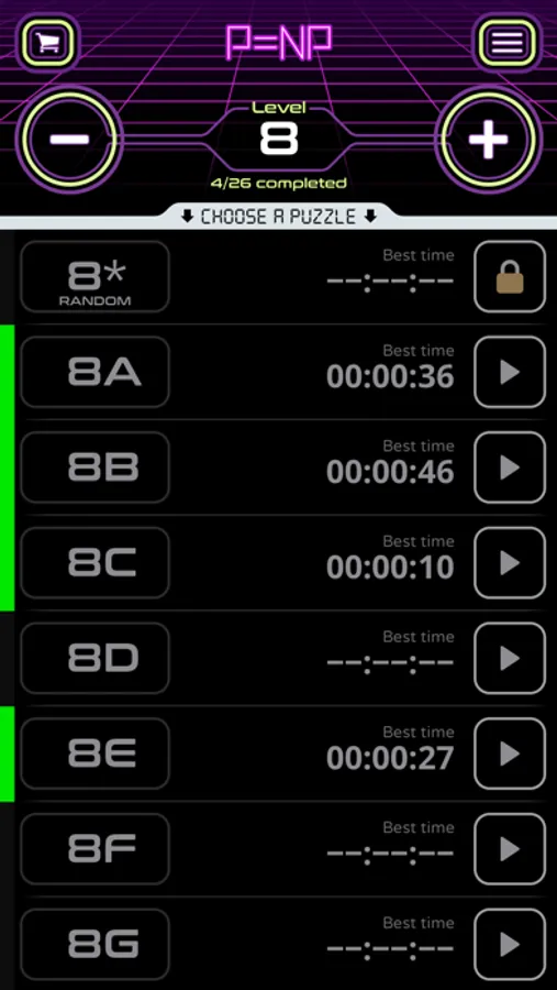 For each level, from 3 to 35 points, complete puzzles A to Z to unlock the random puzzle and thus extend your experience indefinitely.