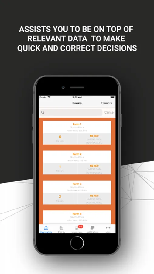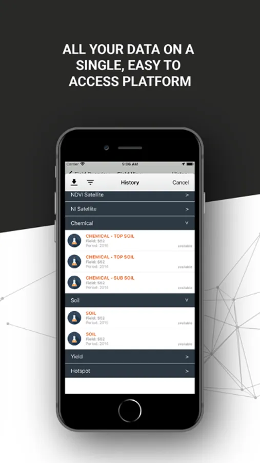 Precision Gateway Mapping is the mobile version for managing spatial data within the SGS Precision Gateway platform. The mapping app gives you access to all the geospatial data gathered on the farm, this includes maps such as: