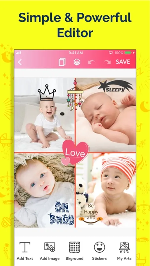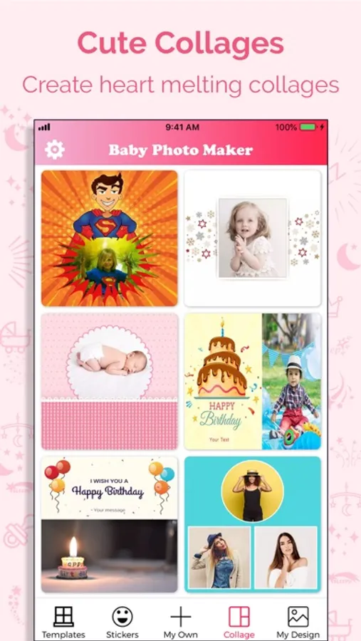 Baby College will help you to make photo grid by adding unique collage effect. With this app, you can enhance photos adjust color, add effects, rotate, crop, resize on your baby photos.