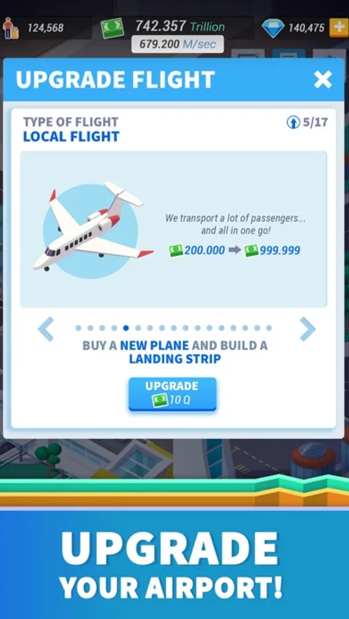 But the fun doesn’t end there. Continue your tycoon adventure by selling your airport and building a new one. You will start over, but this time with all the business know-how previously acquired. The new airport will grow faster and be more profitable thanks to your accumulated experience.