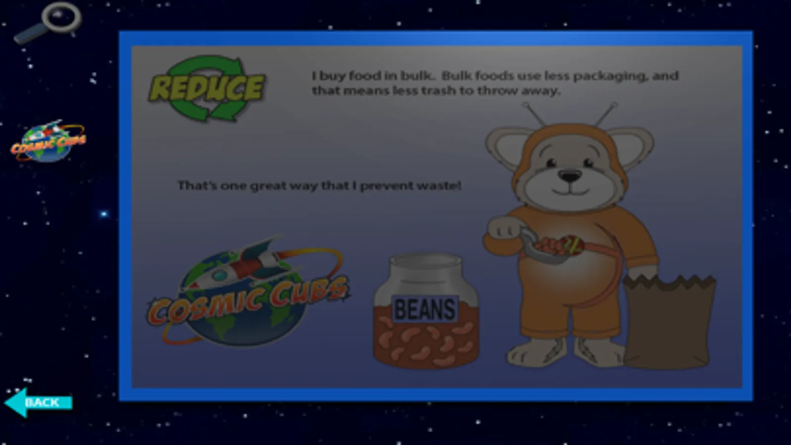 Join the Cosmic Cubs to learn about the 3 R's ( Reduce, Reuse and Recycle ) while having fun !