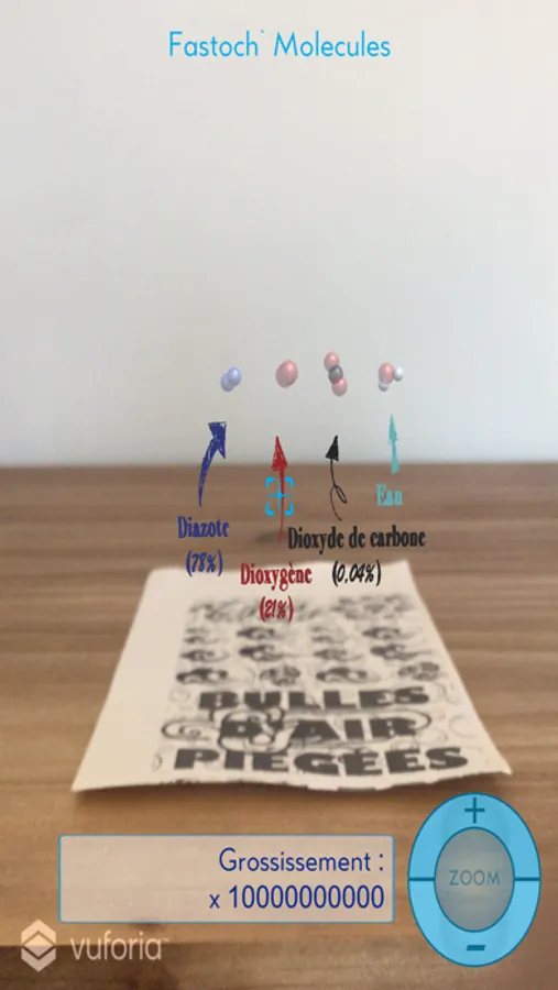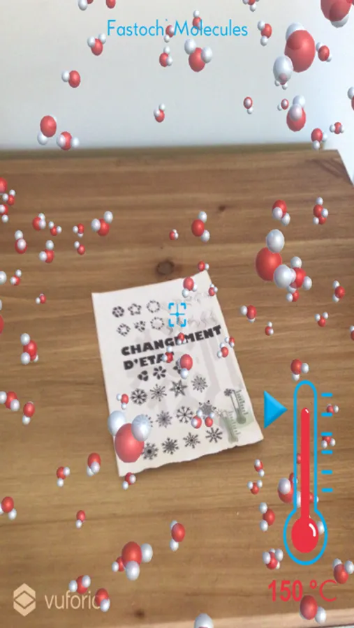 Cette application permet de voir grâce à la réalité augmentée la matière au niveau microscopique. Imprimez les différentes cartes proposées sur le site de Fastoch' Molécules et venez observer les molécules d'eau présentes dans un bécher rempli d'eau liquide ou dans des glaçons. Observez également les molécules qui composent des bulles d'air. Faîtes varier la température ambiante et regardez comment la matière se transforme. A très vite sur cette application pédagogique, qui vous permettra d'y voir plus claire sur le programme de physique chimie au collège et au lycée.