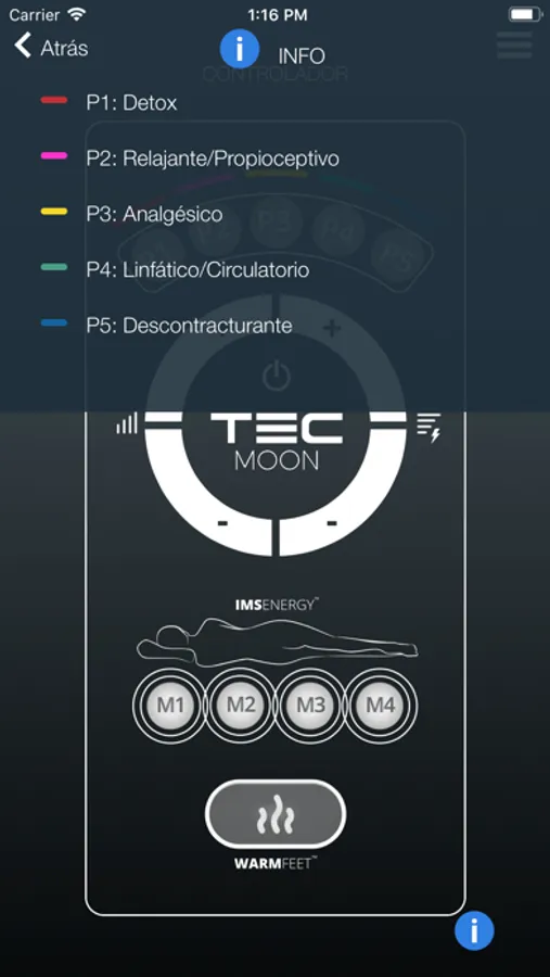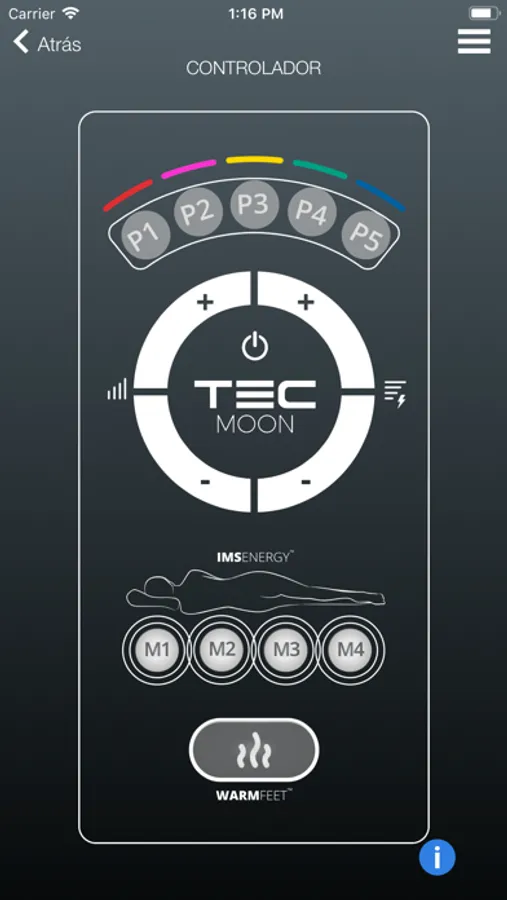 An APP to connect to your mattress device. This app control the motors inside the mattress. Change the program and the specifications of your device (witch motor is on and the velocity and intensity of them).